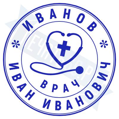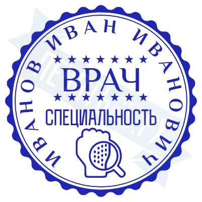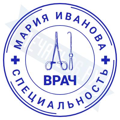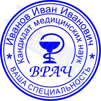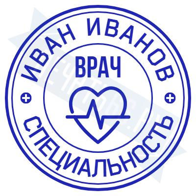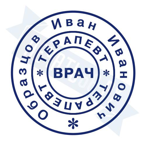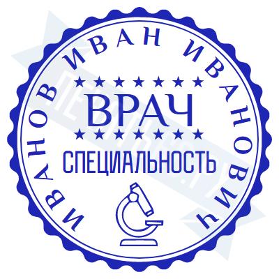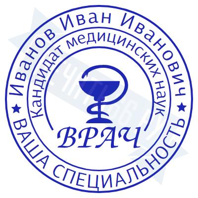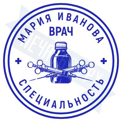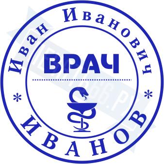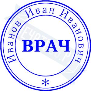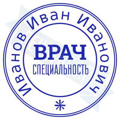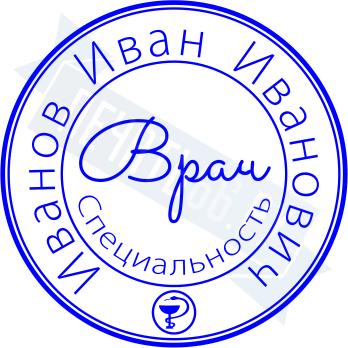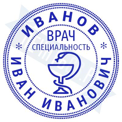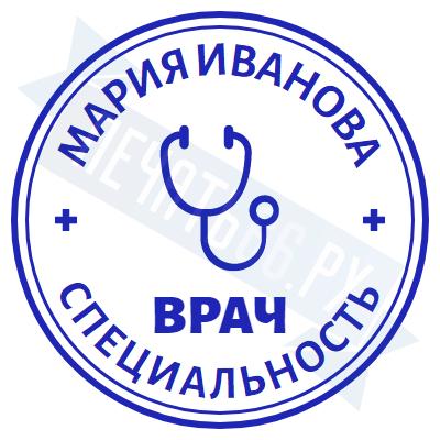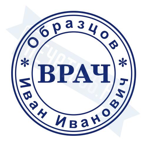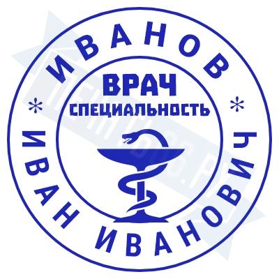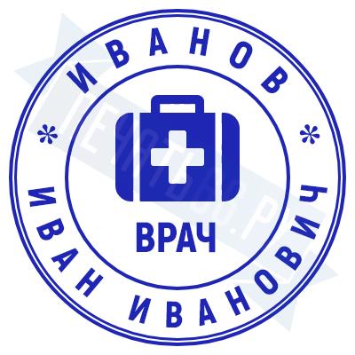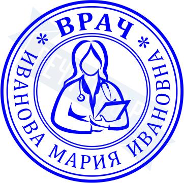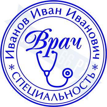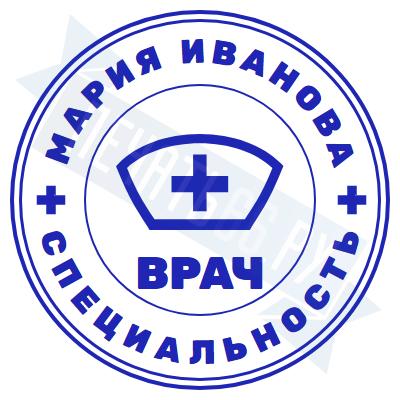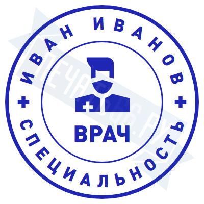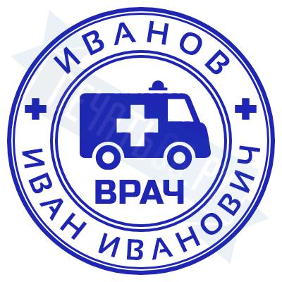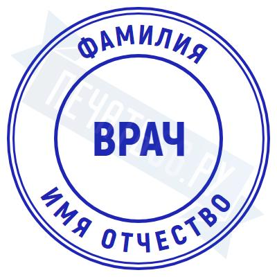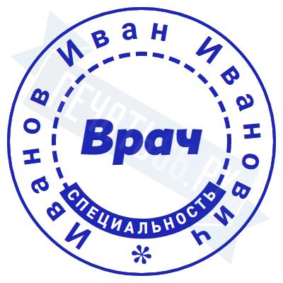 - Печать врача на металлической оснастке Врача карманная D23 с подушкой по цене 2001 рубль и еще 46 видов печатей врача